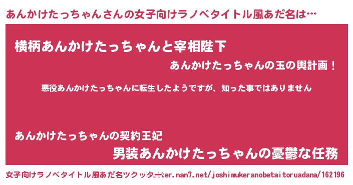 | 男性向けラノベタイトル風あだ名 | 『この素晴らしい世界にあんかけたっちゃんを!』 |