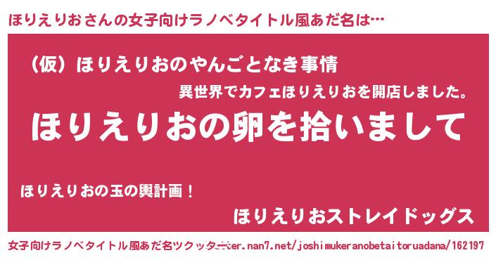 | 恥ずかしいあだ名 | 『ホリリンリン』『プリティーほりえりお』 |