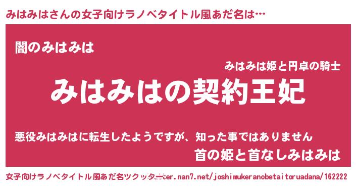 | 意味不明あだ名 | 『永久保存みはみは』『自称みはみは』 |