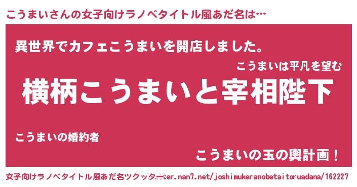 | 意味不明あだ名 | 『永久保存こうまい』『自称こうまい』 |