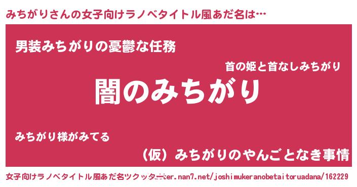 | ヒーロー風カッコイイあだ名 | 『サイバー戦士ミチガリ』『暗黒騎士ミチ』 |