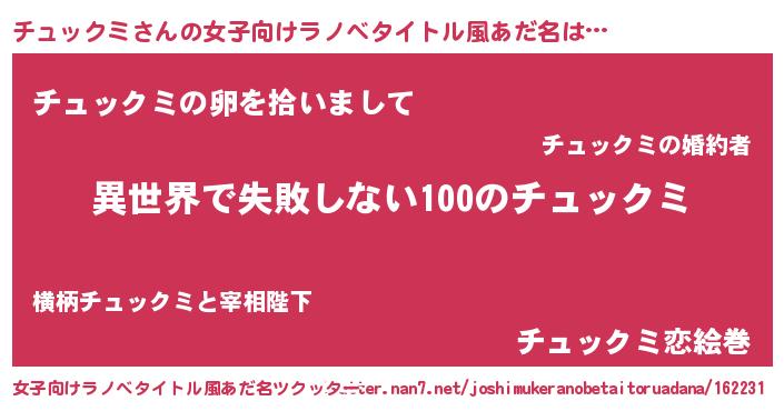 | 男性向けラノベタイトル風あだ名 | 『チュックミという概念が存在しない退屈な世界 』 |