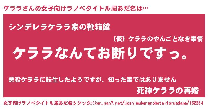 | 男性向けラノベタイトル風あだ名 | 『魔法科高校のケララ』『緋弾のケララ』 |