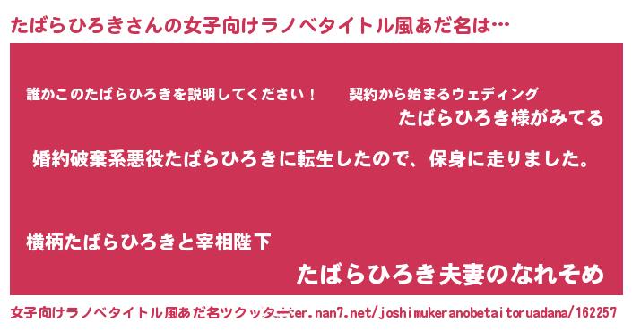 | 男性向けラノベタイトル風あだ名 | 『タバラヒロキスレイヤー』 |