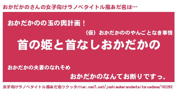 | 男性向けラノベタイトル風あだ名 | 『はたらくおかだかのさま!』 |