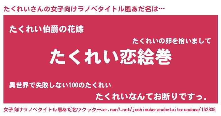 | 男性向けラノベタイトル風あだ名 | 『ノーゲーム・ノータクレイ』 |