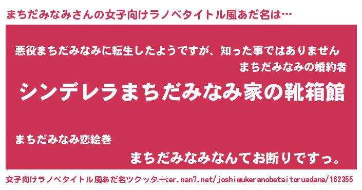 | 意味不明あだ名 | 『住所不定無職まちだみなみ(40歳)』 |