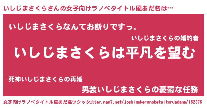| 男性向けラノベタイトル風あだ名 | 『ダンジョンにいしじまさくらを求めるのは間違っているだろうか』 |