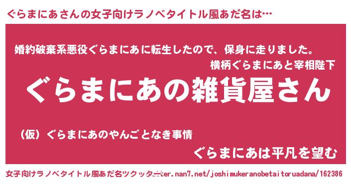 | 男性向けラノベタイトル風あだ名 | 『やはりぐらまにあの青春ラブコメはまちがっている 』 |