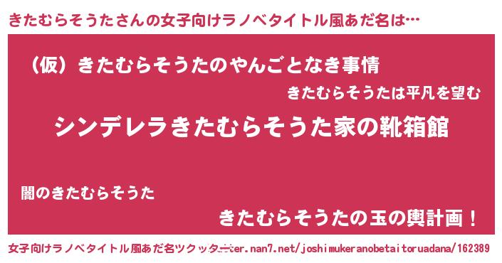 | 男性向けラノベタイトル風あだ名 | 『冴えないきたむらそうたの育てかた』 |