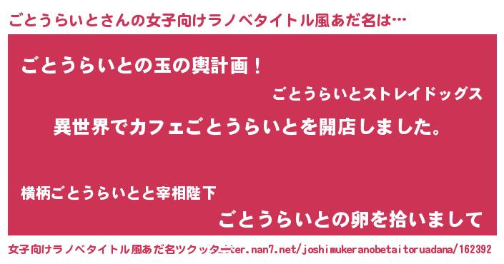 | 男性向けラノベタイトル風あだ名 | 『誰もが恐れるあのごとうらいとが、ぼくの専属メイドになるようです。』 |