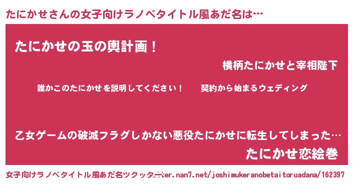| 男性向けラノベタイトル風あだ名 | 『タニカセアートオンライン』 |
