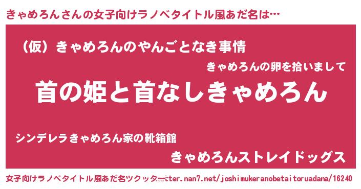 | 男性向けラノベタイトル風あだ名 | 『はたらくきゃめろんさま!』 |