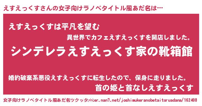 | ヘコむあだ名 | 『えすを』『えすえっくす(笑)』 |