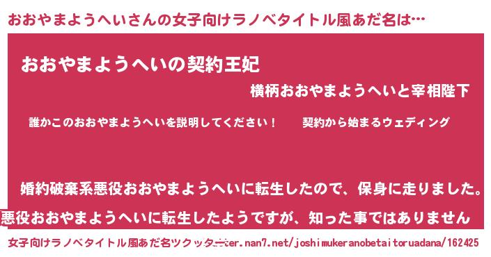 | 男性向けラノベタイトル風あだ名 | 『オオヤマヨウヘイアートオンライン』 |