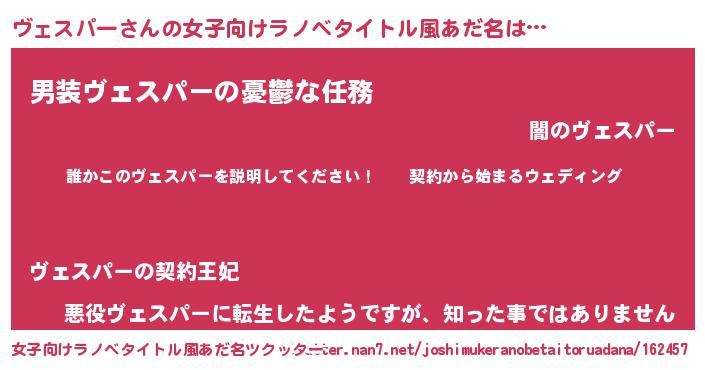 | 意味不明あだ名 | 『ペロリンヴェスパー』『自称ヴェスパー』 |
