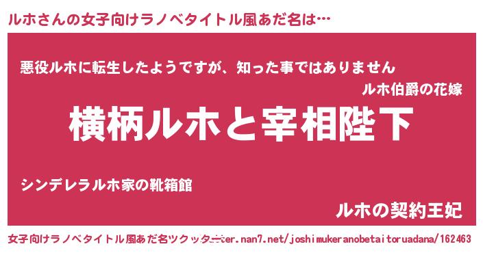 | 男性向けラノベタイトル風あだ名 | 『ルホに滅ぼされるだけの簡単なお仕事です』 |