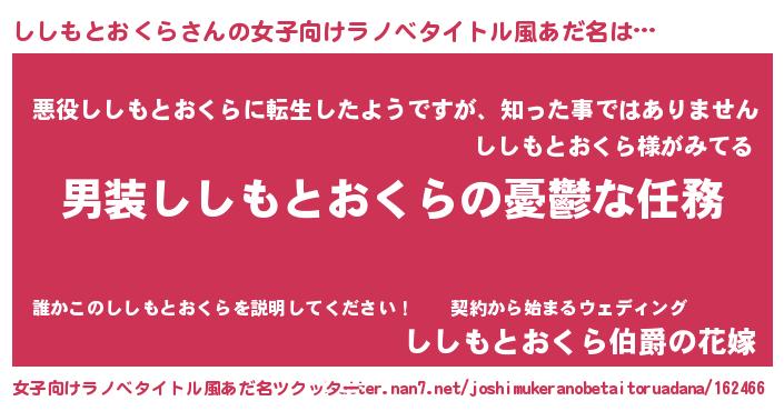 | 胡散臭い通販商品みたいなあだ名 | 『世界中を虜にした100年もののヴィンテージワイン…その名も「ししもとおくら」』 |