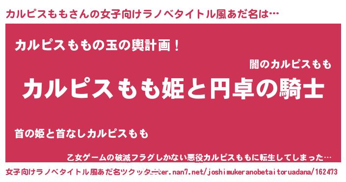 | 男性向けラノベタイトル風あだ名 | 『カルピスモモアートオンライン』 |