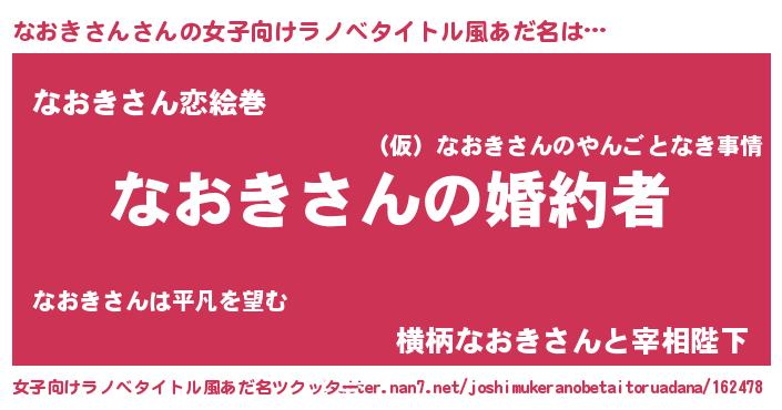 | ファンタジー風あだ名 | 『エターナルナオキサンー』『ナオフェル』 |