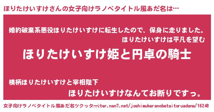 | 肩書あだ名 | 『ほりたけいすけ社長令嬢』 |