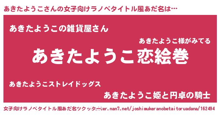 | 男性向けラノベタイトル風あだ名 | 『ノーゲーム・ノーアキタヨウコ』 |