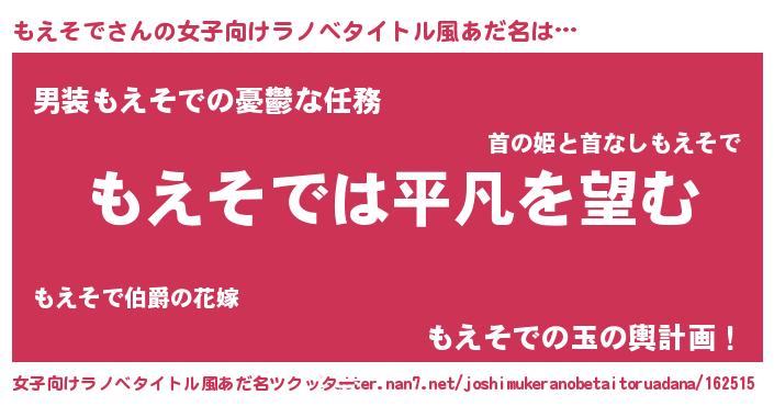 | 意味不明あだ名 | 『とにかく怪しいもえそで』 |