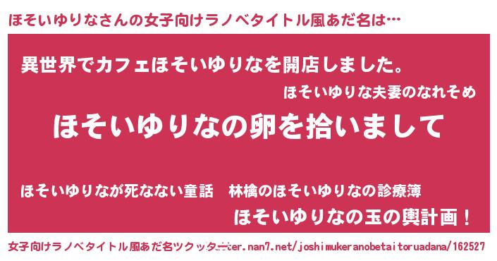 | ヘコむあだ名 | 『ほそっ子』『ほそいゆりな(小並感)』 |