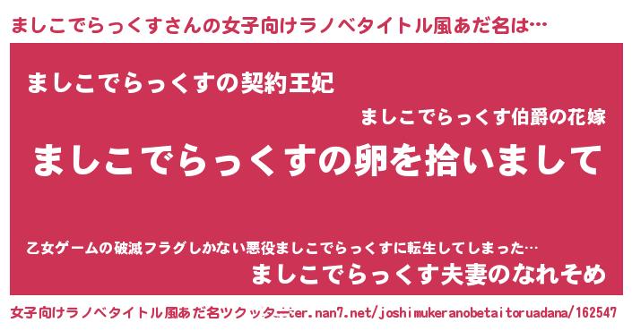 | 男性向けラノベタイトル風あだ名 | 『ましこでらっくすの嫁は女の子じゃないと思った?』 |