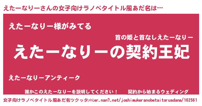 | 胡散臭い通販商品みたいなあだ名 | 『来世でも幸せになれる健康食品…その名も「えたーなりー」』 |
