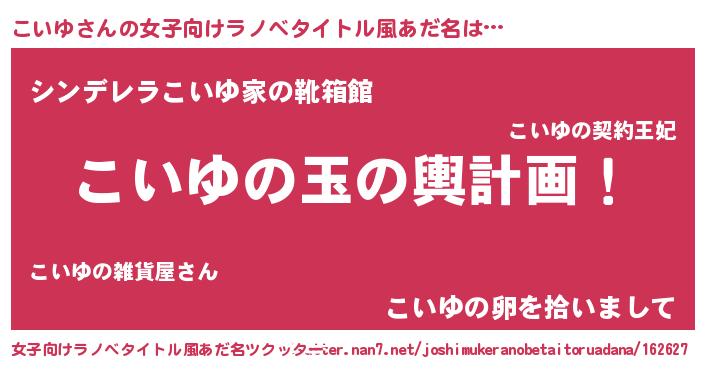 | 男性向けラノベタイトル風あだ名 | 『こいゆ~年齢イコール彼女いない歴の魔法使い~』 |