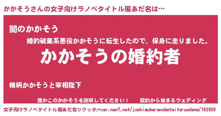 | 胡散臭い通販商品みたいなあだ名 | 『運命の人と巡り会える高級そうな壺…その名も「かかそう」』 |