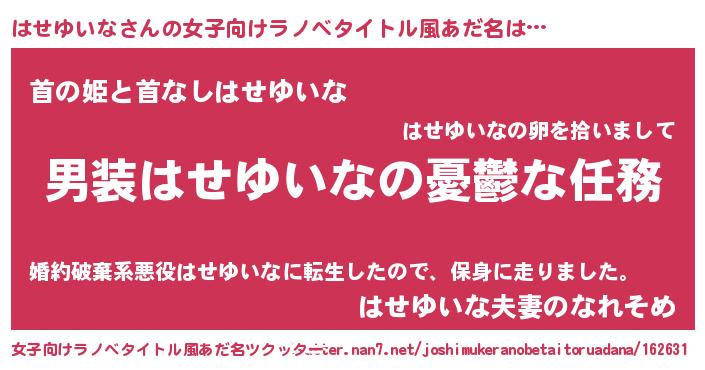 | ヒーロー風カッコイイあだ名 | 『慈愛の使者はせゆいな』『黄金騎士ハセ』 |