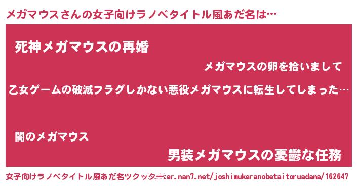 | ヒーロー風カッコイイあだ名 | 『仮面メガダー』『慈愛の使者メガマウス』 |