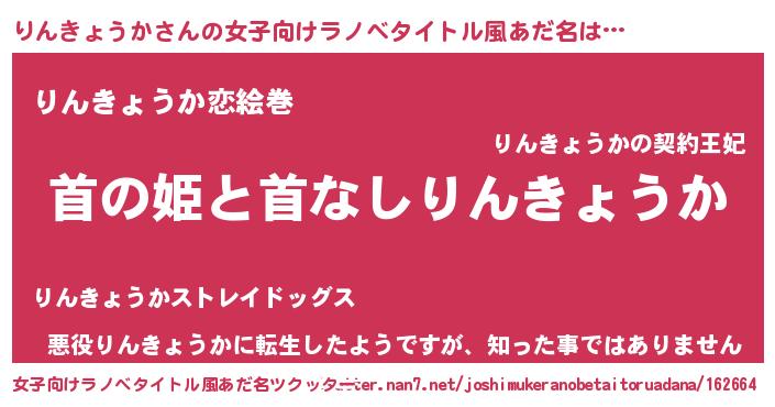 | 男性向けラノベタイトル風あだ名 | 『はたらくりんきょうかさま!』 |