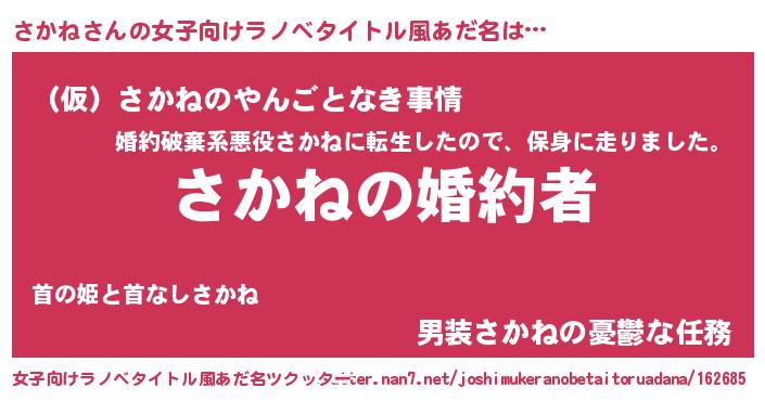 | 胡散臭い通販商品みたいなあだ名 | 『運命の人と巡り会える高級そうな皿…その名も「さかね」』 |