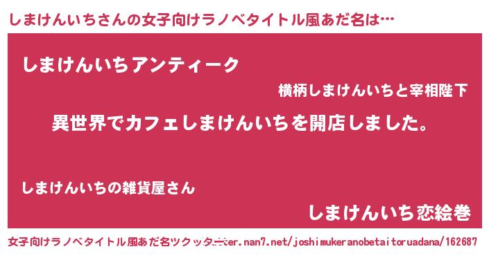 | 男性向けラノベタイトル風あだ名 | 『誰もが恐れるあのしまけんいちが、ぼくの専属メイドになるようです。』 |