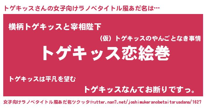 | 男性向けラノベタイトル風あだ名 | 『ノーゲーム・ノートゲキッス』 |