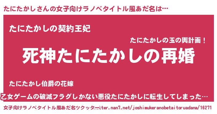 | 男性向けラノベタイトル風あだ名 | 『ノーゲーム・ノータニタカシ』 |