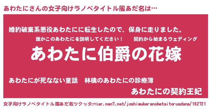 | 男性向けラノベタイトル風あだ名 | 『やはりあわたにの青春ラブコメはまちがっている 』 |