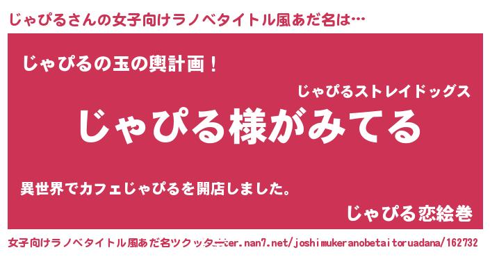 | ヘコむあだ名 | 『じゃお』『じゃぴる(笑)』 |