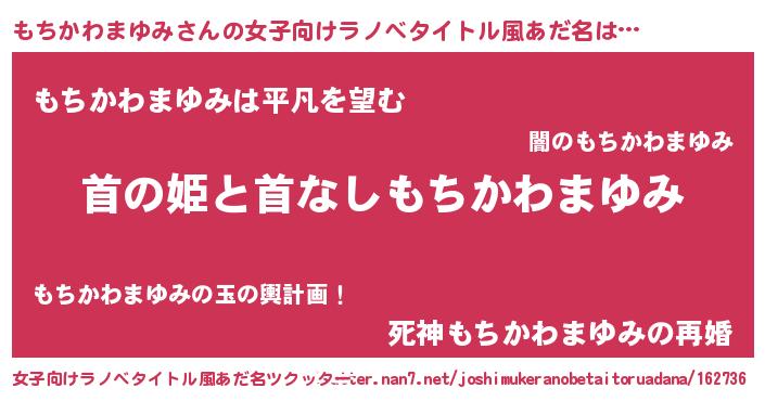 | 男性向けラノベタイトル風あだ名 | 『はたらくもちかわまゆみさま!』 |