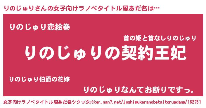 | 男性向けラノベタイトル風あだ名 | 『誰もが恐れるあのりのじゅりが、ぼくの専属メイドになるようです。』 |