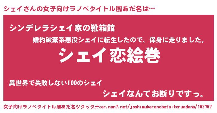 | ヘコむあだ名 | 『シェイ(小並感)』『なまこ酢』 |