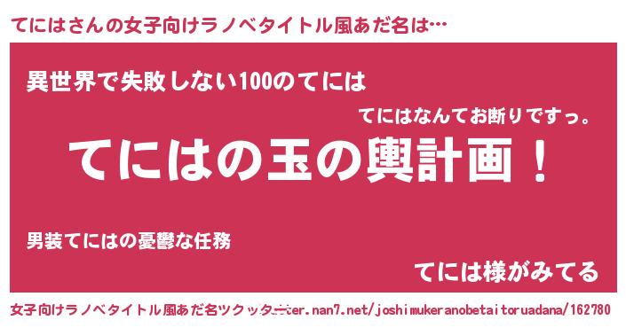 | 男性向けラノベタイトル風あだ名 | 『転生したらてにはだった件』 |