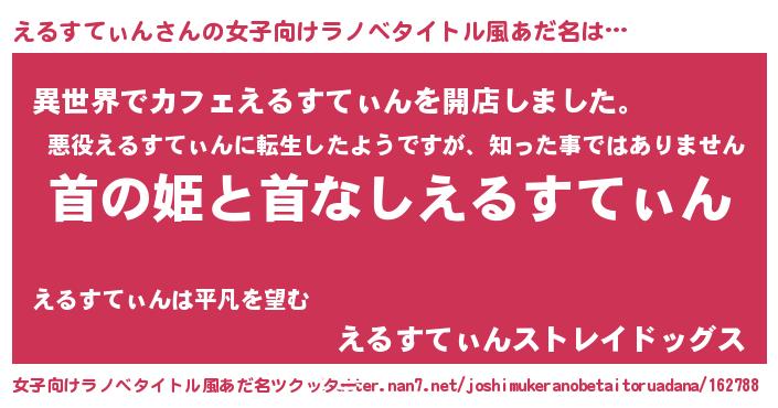 | 意味不明あだ名 | 『永久保存えるすてぃん』 |