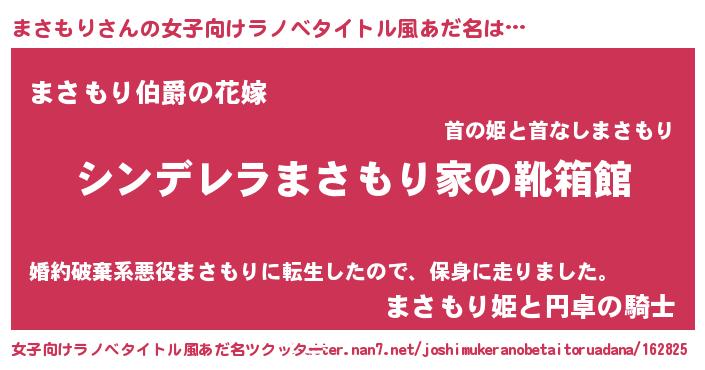 | 男性向けラノベタイトル風あだ名 | 『緋弾のマサモリ』『まさもりの憂鬱』 |