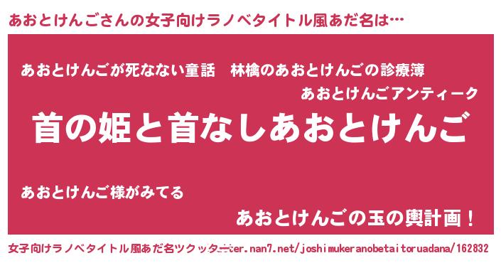 | 意味不明あだ名 | 『住所不定無職あおとけんご(91歳)』 |