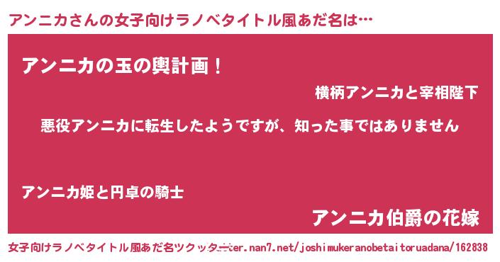| 意味不明あだ名 | 『住所不定無職アンニカ(40歳)』 |