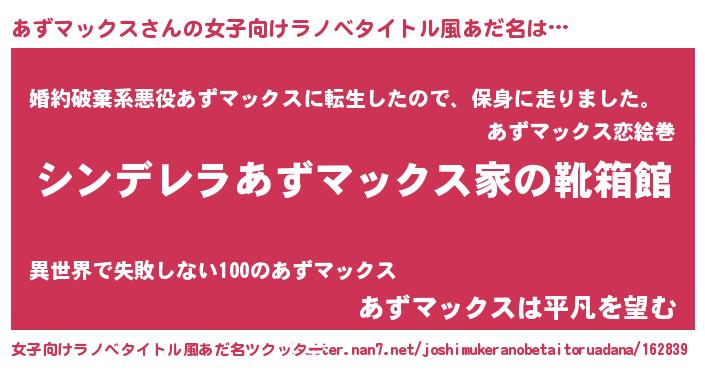 | 胡散臭い通販商品みたいなあだ名 | 『信頼と実績のペンダント…その名も「あずマックス」』 |